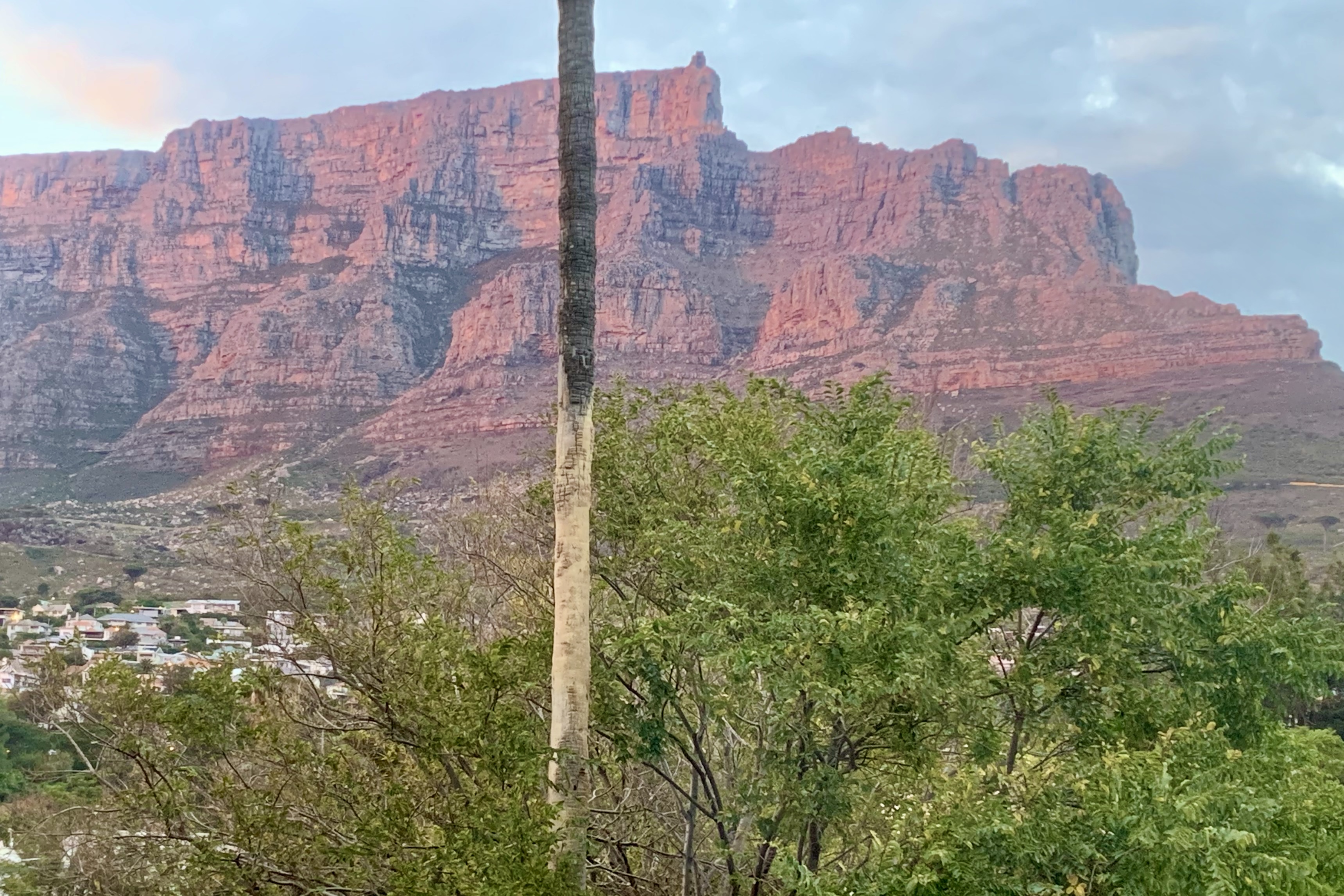 Na manhã seguinte, no terraço, fui surpreendida pela imponência e beleza da Table Mountain — uma montanha de 260 milhões de anos, mais antiga que os Andes — que emoldura Cape Town. Meu coração sorriu.